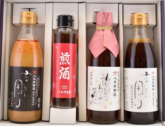 Ingrédients : Sauce soja (soja, blé, sel) (18%), mirin (riz, koji de riz, shochu de riz) (17%), pâte de sésame (15%), vinaigre de riz (11%), bouillon dashi de kombu (10%), eau (9,6%), sucre (9%), purée de pomme (5%), huile de sésame (2%), sel (1,5%), saké (1%), pâte de gingembre (0,3%), piment rouge (0,3%), poudre de bonite séchée (0,3%) Conservation : Conserver à température ambiante. Après ouverture, conserver au réfrigérateur.